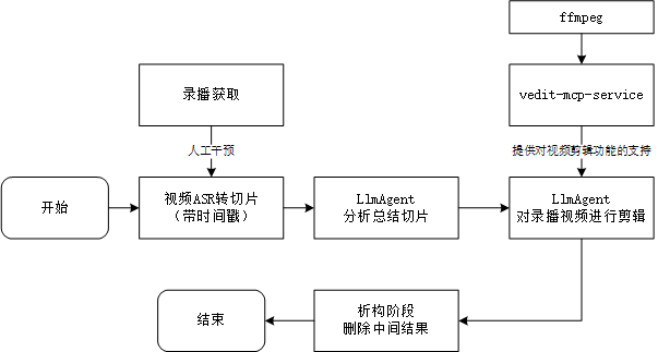 Auto-slicing is an automated long-video slicing tool implemented by an AI Agent, utilizing ASR (Automatic Speech Recognition) and LLM (Large Language Model) to facilitate the slicing of recorded videos.