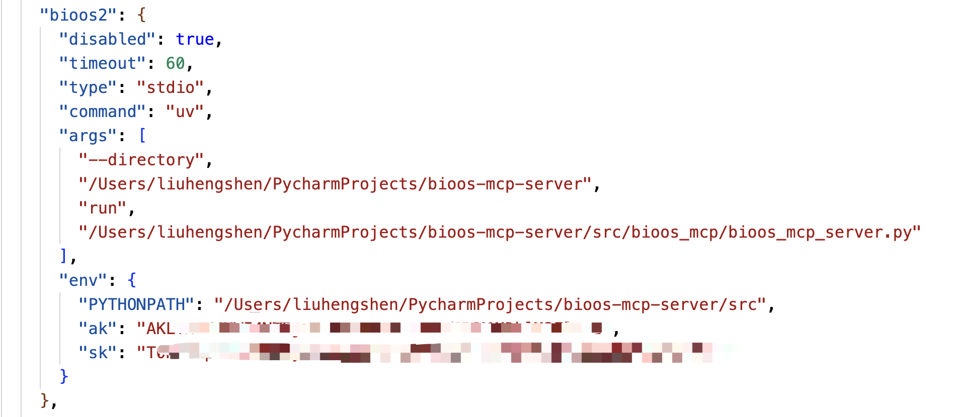 "PYTHONPATH": "path/to/bioos-mcp-server/src"
