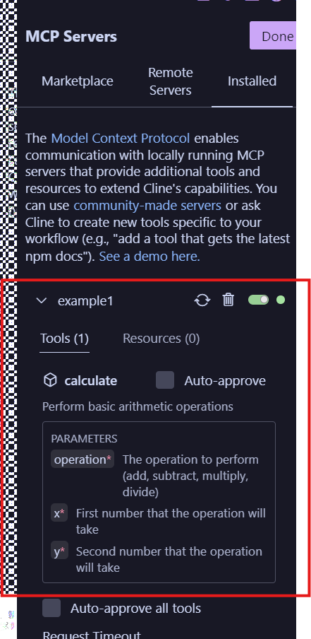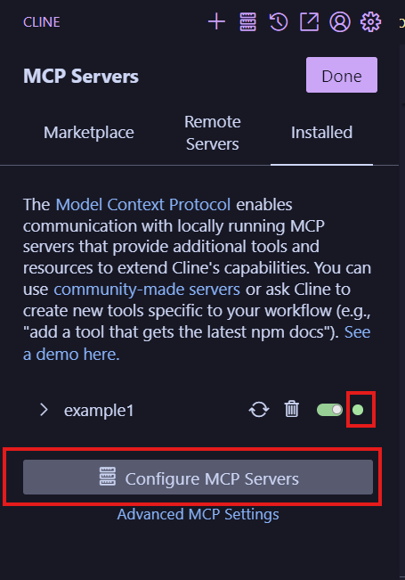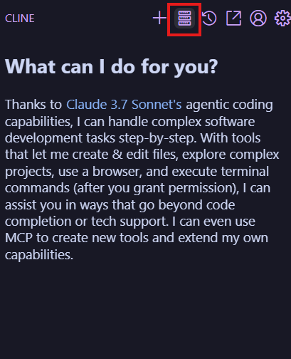 進入cline之後點選mcp server icon