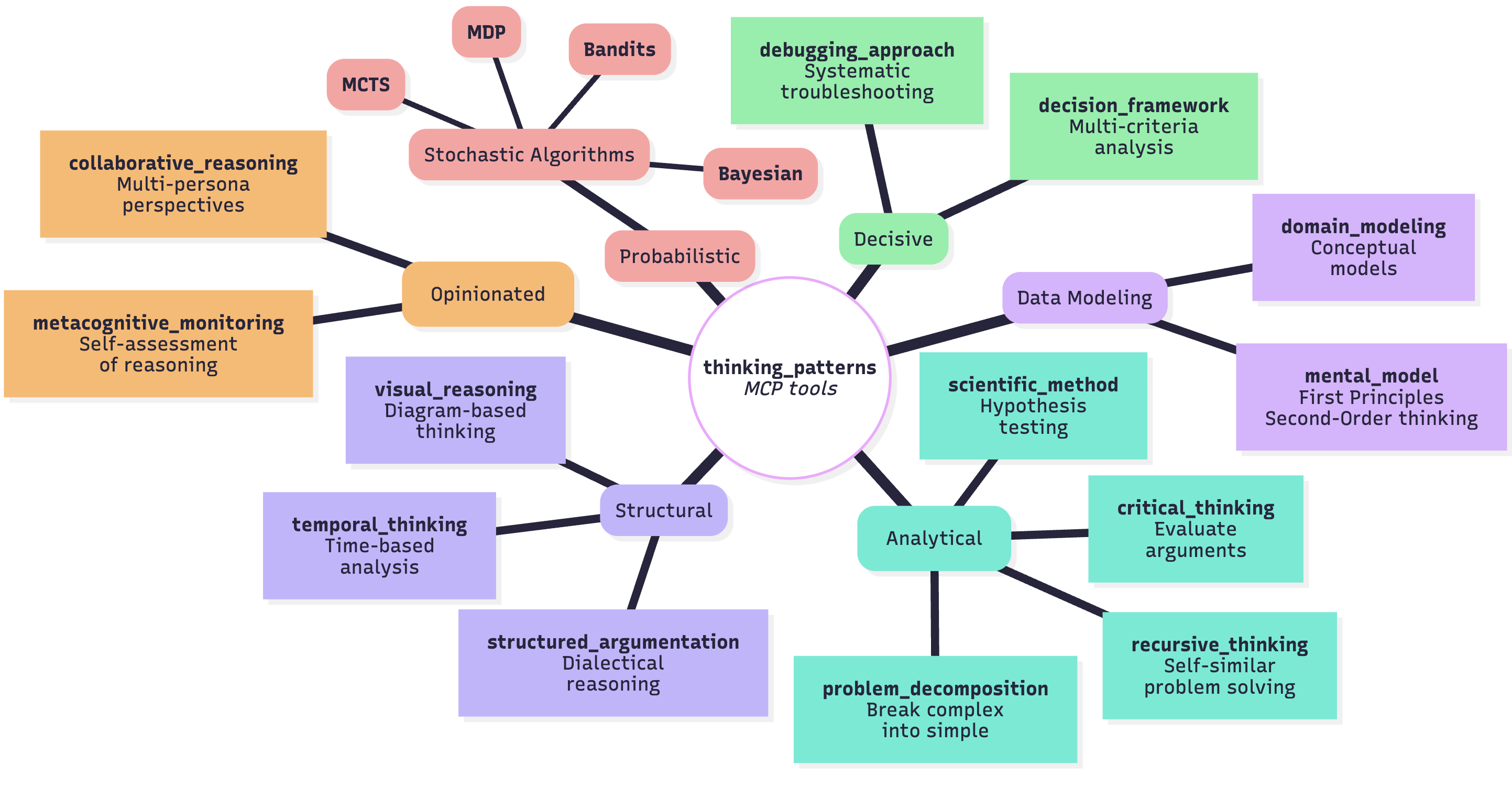 | Systematic | sequential_thinking, problem_decomposition, recursive_thinking | Planning, breaking down complexity |