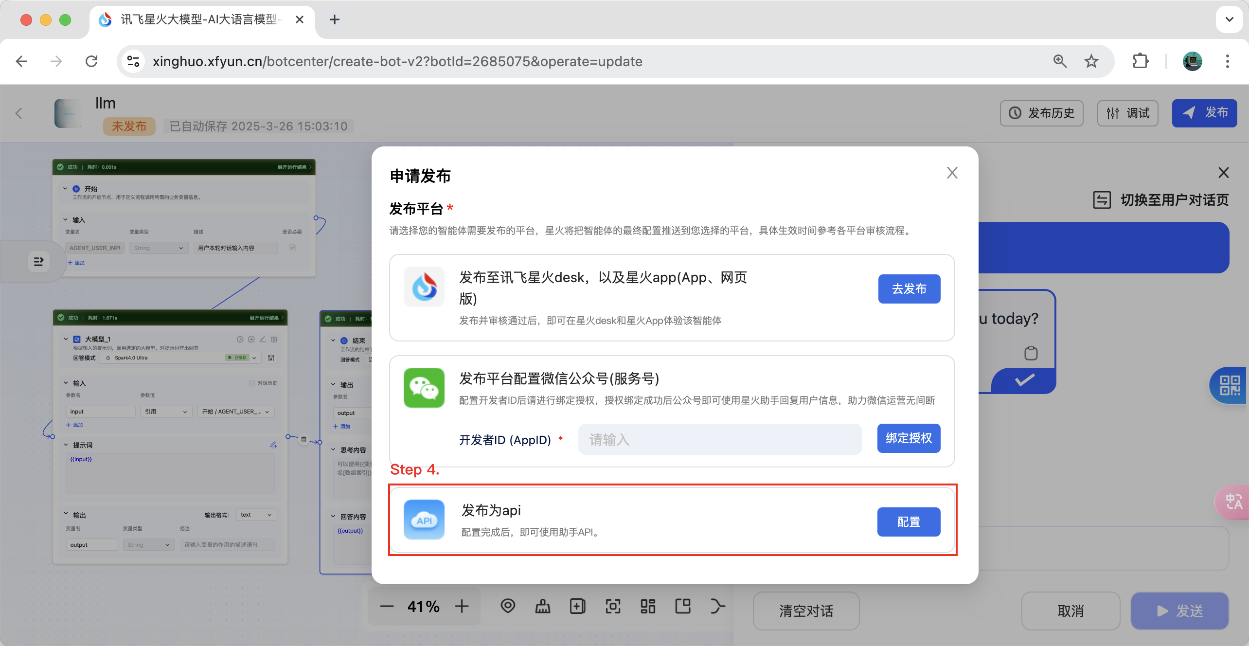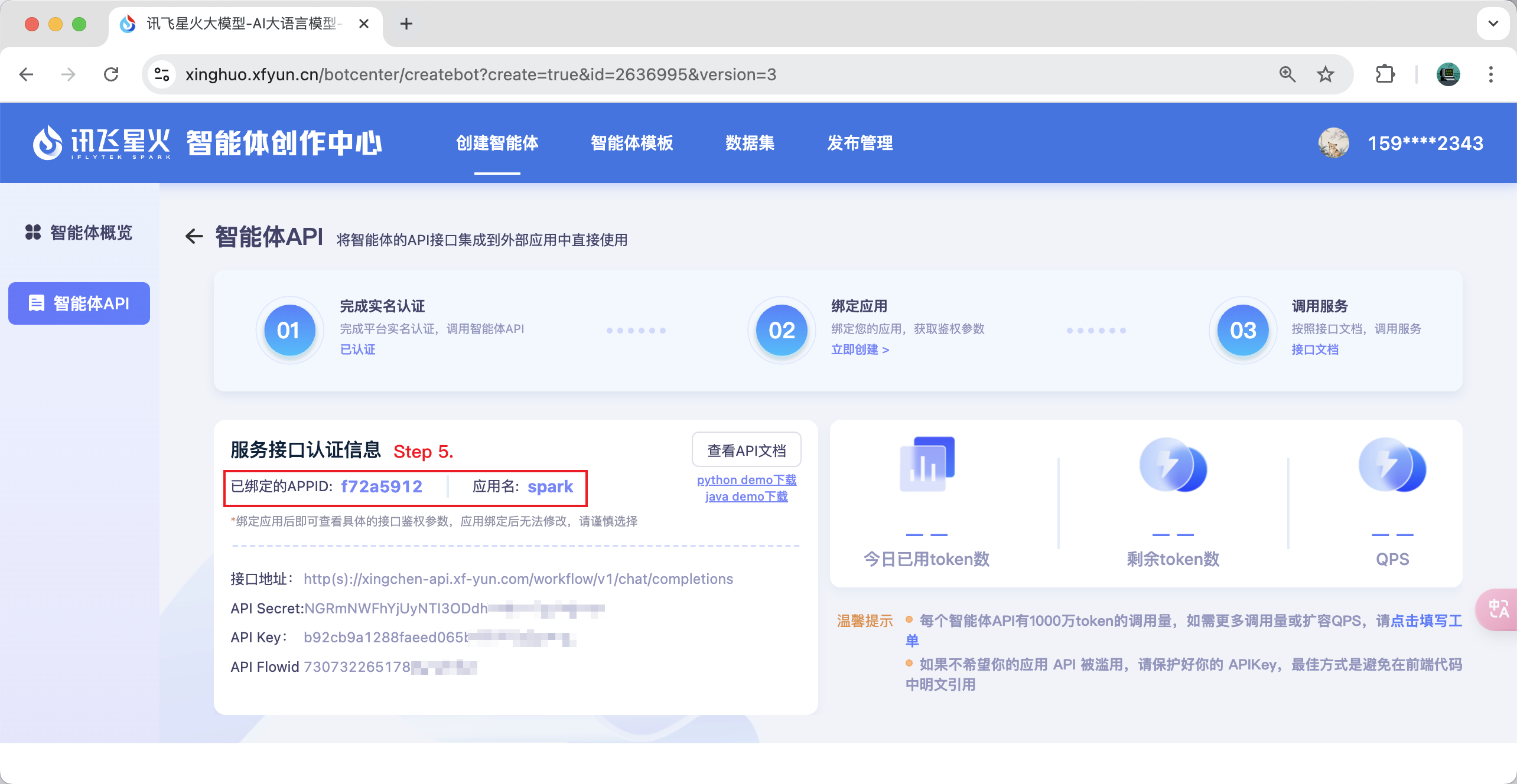 Note: If you find that you are unable to select an app, you can go to https://www.xfyun.cn to apply.