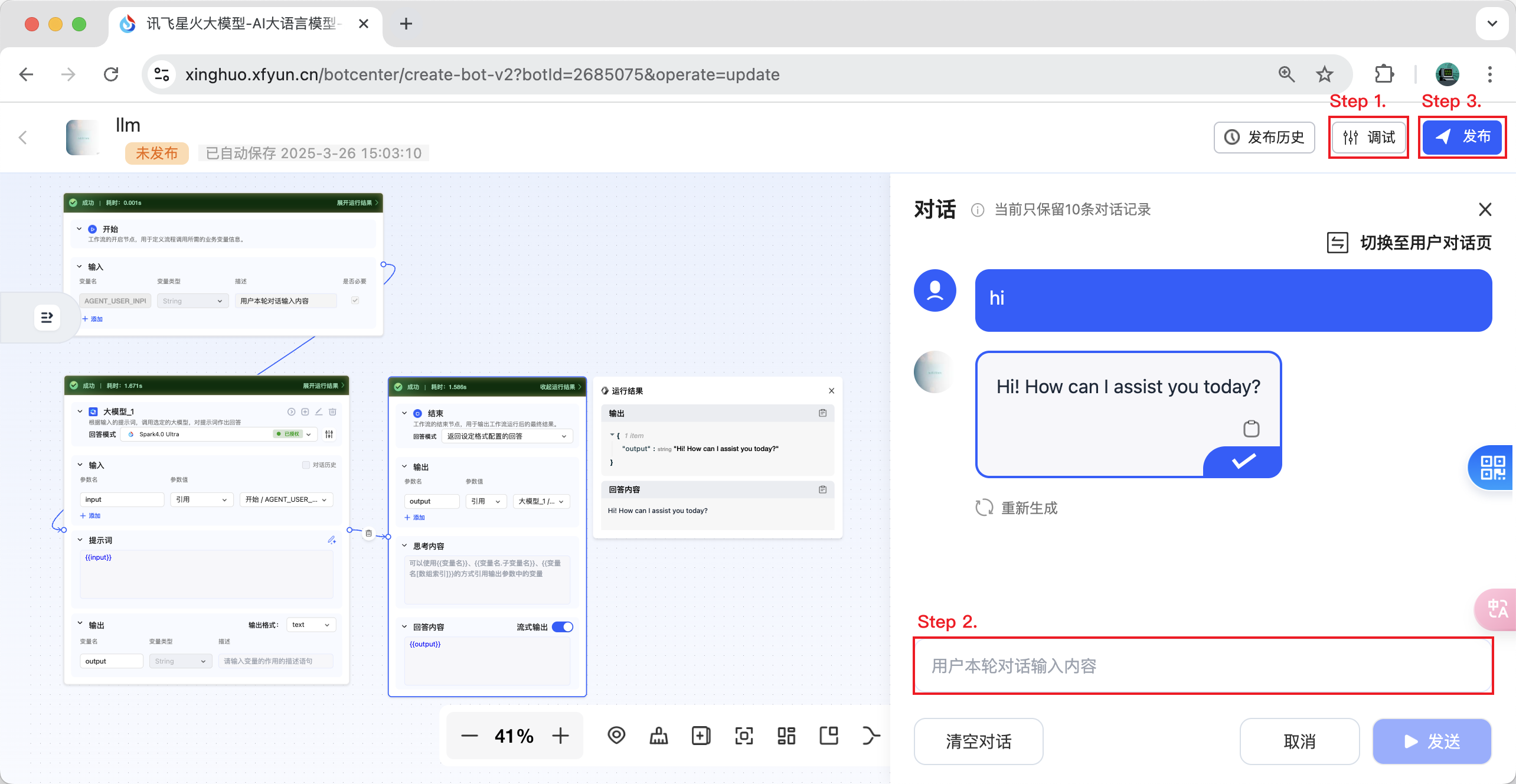 - Step 2. Engage in a conversation with your workflow and ensure the conversation is successful.